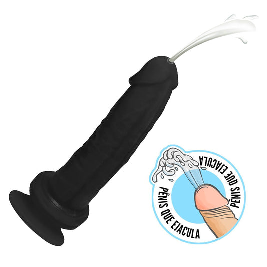 MARTES - FLEXIBLE EJACULATING REALISTIC PENIS WITH SUCTION CUP - BLACK - 19 X 4.5 CM